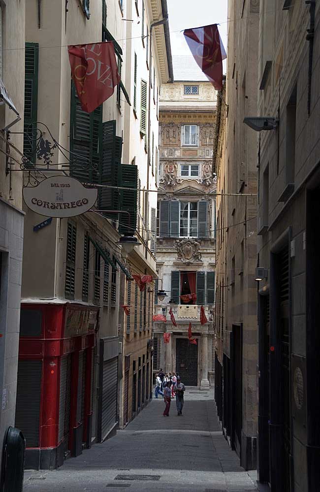 The narrow streets of the old city, Genoa. A great place to explore for architecture, history and shops